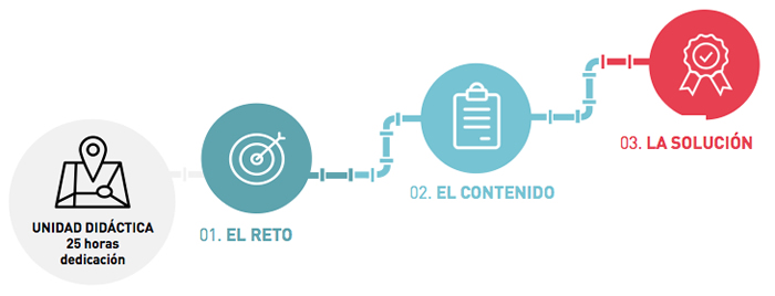 En primer lugar te presentamos el reto que deberás resolver y con el que te puedas enfrentar en la realidad; a continuación podrás acceder a los contenidos transmedia para encontrar tu solución; por último, debes entregar tu solución que podrás contrastar con la solución propuesta por el experto.